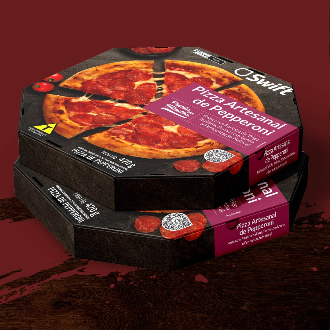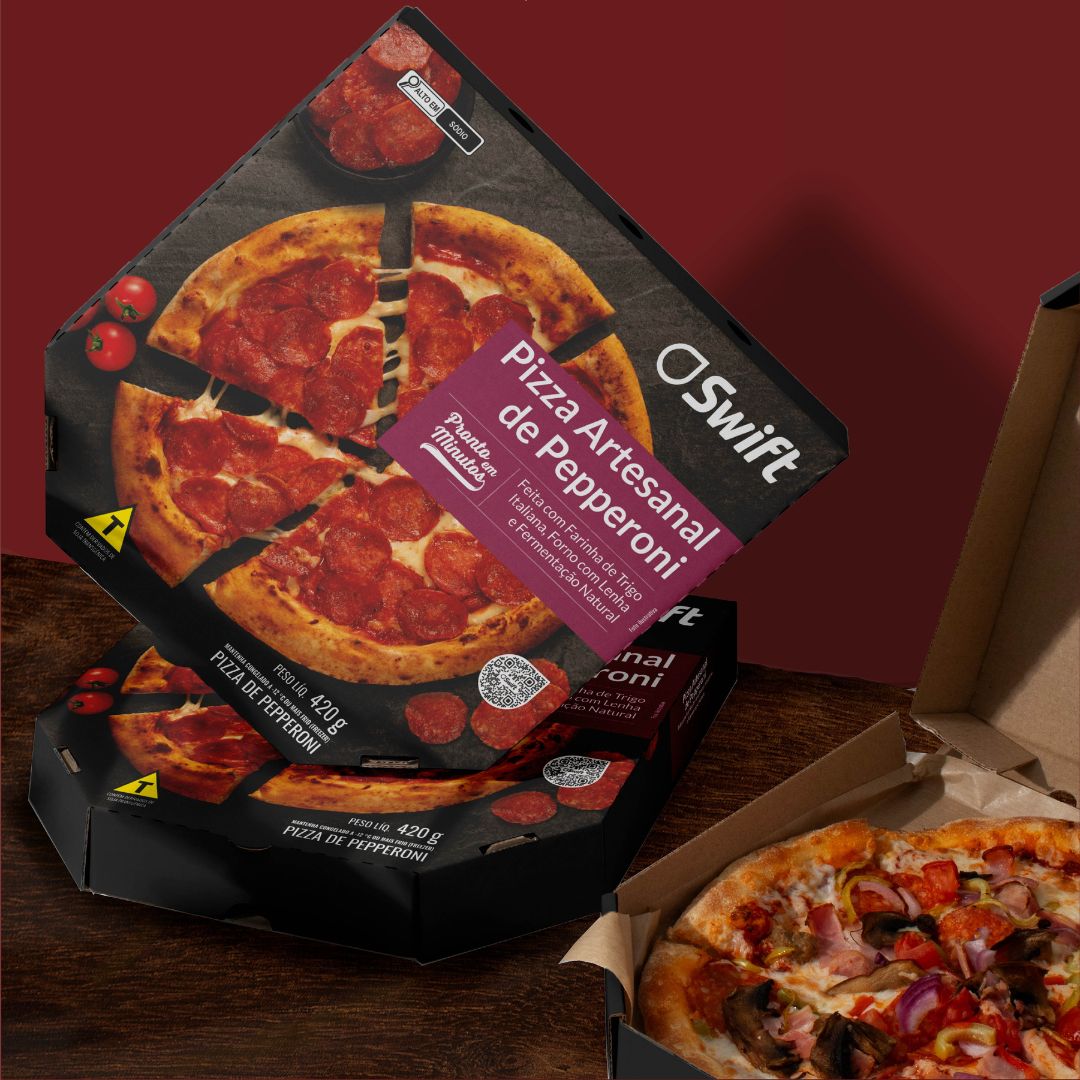 O resultado é uma embalagem que equilibra sabor, conveniência e percepção de qualidade, conectando o consumidor à experiência da pizza antes mesmo do preparo.
