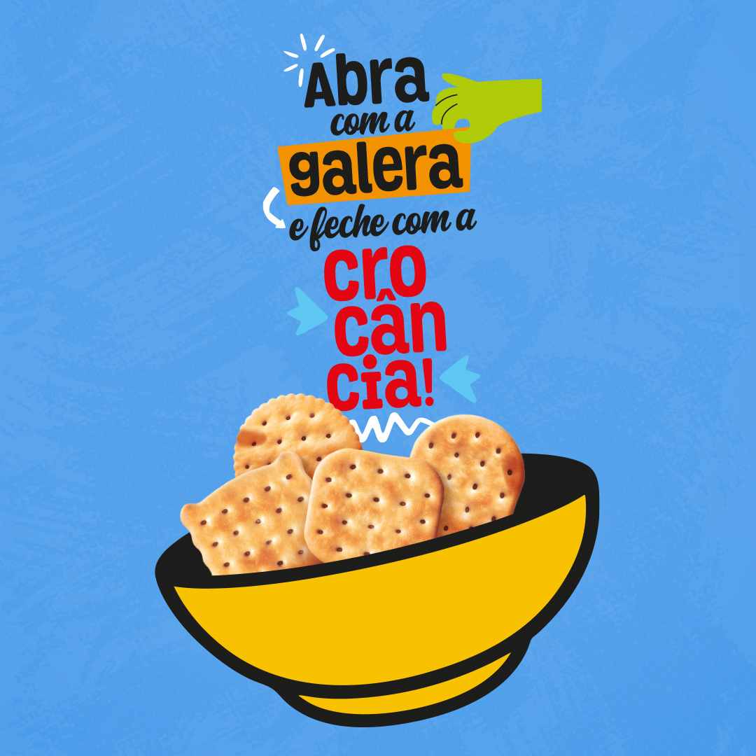 O desafio foi equilibrar o retrô com o moderno, criar uma embalagem que se destacasse na gôndola e transmitir crocância e compartilhamento sem poluir o design.